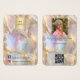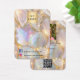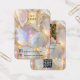 A display card for your handmade earring or jewellery. Agate, opal stone in gold, pnk turquoise print as background. Personalise and add your business logo and Facebook and Instagram accounts on the front