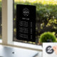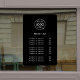 A simple custom black business vinyl window cling decal price list sign template in a modern minimalist style which can be easily updated with your company logo, custom title and costs per service or product.