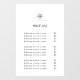 Display your pricing with style using this modern minimalist white window cling featuring your business logo. Perfect for cafés, salons, boutiques, restaurants, or retail shops, this clean and professional design clearly communicates your services and prices. Personalise with your company details for a polished branded look. Easy to apply, remove, and reposition, this window cling is ideal for both indoor and outdoor business promotions.