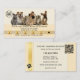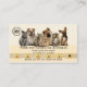Loyalty business card featuring your own logo on an elegant yellow gold background design with cute pets. A row of metallic gold numbers can be used to punch the visits of your customer. On the back is an optional and easy to customise QR code template. A great business card for a pet grooming salon or veterinarian clinic.