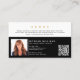 This unique design will help you stand out from the crowd. You can upload your logo to the front of the card and change the background image to one of your own listings. On the back there is a QR code - simply type the link in the text box in the personalization options. You could direct clients to your website homepage, current listings page or even your social media account. There is also space for a headshot to help build trust with your potential clients.