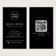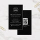 Vertical, black or any colour business cards with customisable template fields for your custom logo (photo or other graphic), QR code, name, title/company name, contact information and social media on the front. You can change fonts, font and background colours with the design tool.