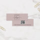 Light rose taupe earring mini product display card with centred custom logo template and QR code on the back. The earring guides can be adjusted by adding and removing spaces in the template field, and by moving the whole element in the design tool.