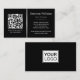 Modern, elegant, black business cards with custom logo and QR code templates. The text and QR code is separated by a printed silver grey colour gradient dividing line (not real foil). Fonts, font colours and background colours can be changed with the design tool.