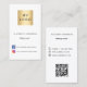 A classic white background. Personalise and add your business logo,name, title and contact information. Add your website url/link to the Qr code. With Facebook and Instagram icons. Black text.