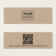 Kraft paper mini earring product display card with centered custom logo template and QR code on the back. The earring guides can be adjusted by adding and removing spaces in the template field, and by moving the whole element in the design tool.
