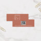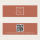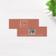 Terracotta brown earring mini product display card with centred custom logo template and QR code on the back. The earring guides can be adjusted by adding and removing spaces in the template field, and by moving the whole element in the design tool.