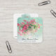 SQUARE - rounded corner 2 upload Business card with a Hanging Pot of Pink Ethereal Petunia / Petunias and a touch of Ephemera which is old fashioned hand writing.