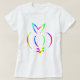 A cut out image of Desiree de Rabbitt in a cheerful rainbow. Add your name or message or change the background colour to make something that is truly yours.