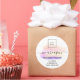 A sticker for promotion of the reopening of your beauty salon, business, or for a makeup artist after Covid-19, the corona virus. A white background with light airy pastel coloured painted brush strokes in pink, purple, yellow, faux gold. The text: We are open. Personalise and add your business logo, name, address and contact information.