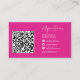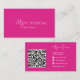 Simple white on hot pink logo name script hair makeup qr code with a brushed script typography add your business photo . Add your social media. With an elegant signature script font, all the colours are editable , add your logo.Move the letters to create your logo.