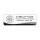 Custom logo return address labels with a black and silver grey (printed colour gradient, not real foil), curved border and template fields for your company name and adress.