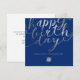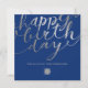 Logo Silver Script Lettering Navy Blue Birthday Card