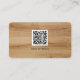 Logo Social Media QR Code Carpentry Wood Modern Business card features your corporate logo, with your name, contact and social media details on a wooden background. On the reverse is your QR code for your customers to scan. Personalise by editing the text in the text box provided. Designed by ©2025 Evco Studio www.zazzle.com/store/evcostudio