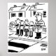 At a School Crossing a Lollipop Man uses his lollipop to make a barrier to keep school children on the pavement. Cartoon showing a lollipop man, crossing guard, crosswalk attendant, or school road patrol