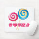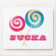 Two lollipops in blue and pink crossing each other. Text reads: Sucka.