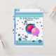 Yummy swirl lollipops in fun colours with candy dots floating in the background. A border of stripes accents it. Customise with all of your birthday party information as desired.