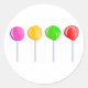 Illustration of a selection of four different coloured candy sweet lollypop treats. Image available on various gifts and products.