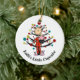 A stick figure brunette girl with pony tails, red polka dotted pyjamas, and pink bunny slippers holds a big pink frosted cupcake in front of a decorated holiday tree! Text reads Lolli's Little Cupcake but you can change the text to a name if you prefer!