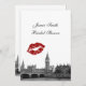 Customisable Invitations and accessories with an iconic view of the London skyline featuring a black & white etched look photo of Big Ben and a red lipstick kiss.