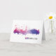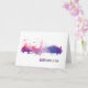 This design features an illustration of the London skyline in watercolor paint splashes.