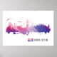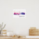 This design features an illustration of the London skyline in watercolor paint splashes.