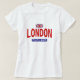 British flag (sometimes called Union Jack) aboe London England in text. Whole thing is brightly coloured in red white and blue