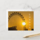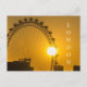 A beautiful photograph of the sun setting and the London Eye printed on a postcard.