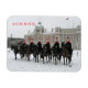 A beautiful view of the Household Cavalry in London on a rare snowy day printed on a souvenir fridge magnet.