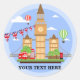 A fantasy view of London with Big Ben, Tower Bridge, red London bus and more.