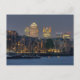 Postcard of the River Thames at night showing Canary Wharf and Wapping river front