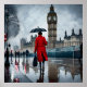 A figure in a bold red coat stands out, their umbrella a symbol of resilience against the elements.