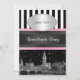London Skyline BW Black & White Stripe Invitation Pink Ribbon Collection - Bachelorette Party Invitation