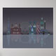 London Skyline Night Reflections by Fab Funky. Features famous landmarks of London against a beautiful night sky.