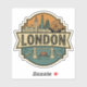 Mind the gap and celebrate the British capital with this stylish vintage travel badge! The artwork features a retro-style emblem showcasing London's iconic skyline, including Big Ben (Elizabeth Tower), the London Eye, and modern marvels like The Shard and The Gherkin. Below the bold "LONDON" banner spans the majestic Tower Bridge with a classic red double-decker bus crossing the River Thames. Rendered in a nostalgic palette of muted teal, rust, and cream, this design is the perfect souvenir for Anglophiles and world travelers.