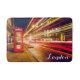 Enrich your home decor with this artistic bath mat featuring a red telephone booth and blurred bus on a city street at night in London England! The font and colour of the text can be changed to fit your preference.