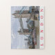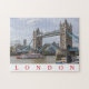A beautiful view of Tower Bridge in London lifted to let a boat through printed on a puzzle.