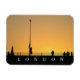 A beautiful view of people silhouettes on Waterloo Bridge in London at sunset printed on a souvenir fridge magnet.