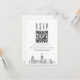 A minimal wedding rsvp QR code card featuring a beautiful stylised skyline representing the city of London. Replace the QR code with one featuring a link to your website to help make responding to your wedding event easier for your future guests.