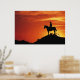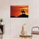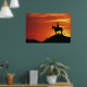 PAINTING OF A LONE COWBOY ON HORSEBACK WITH THE SUN SETTING BEHIND HIM
