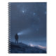Venture into the infinite with this breathtaking notebook, where a solitary figure shines a beam of light into a vast, starlit sky. Bathed in shades of midnight blue, it evokes courage, wonder, and the thrill of discovery. Perfect for adventurers, writers, and dreamers, it’s your invitation to explore the unknown—one page at a time.