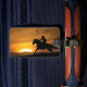 A great way to keep track of your bag, this luggage tag can be edited with your personal information. A great image of a cowboy riding in a western sunset, it will be easy to identify your luggage on the rack!