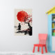 A silhouetted samurai under a sakura tree and a red sun. A powerful and expressive poster in the sumi-e style.
