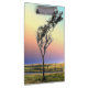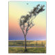 An art design of a lone tree with a dramatic sky and fields in the distance.
