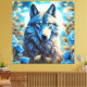 Lone Wolf in the Enchanted Blue Rose Garden Canvas Print