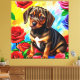 Lonely dachshund pug mix puppy dog print art with colourful roses. Multicolored flowers. Would look great in a child's room. Home decor.