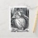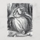 This postcard has a vintage black and white illustration of a sad lonely princess sitting alone in the woods by a large tree with a frog watching her.