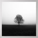 Landscape photograph of a loney tree wrapped in fog post processed in black and white for dramatic feeling.