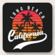 Long Beach coaster with a retro design that features a sunset and palm trees on black background (customisable bg colour). This design also has California in a handwritten font with a swash tail glyph for that stylish retro look. These coasters are just for you if you're from Long Beach or you can get as a gift or souvenir for someone.