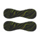 Stamped of image with wavy or bent strokes in green color with soft sepia in some strokes on black background.